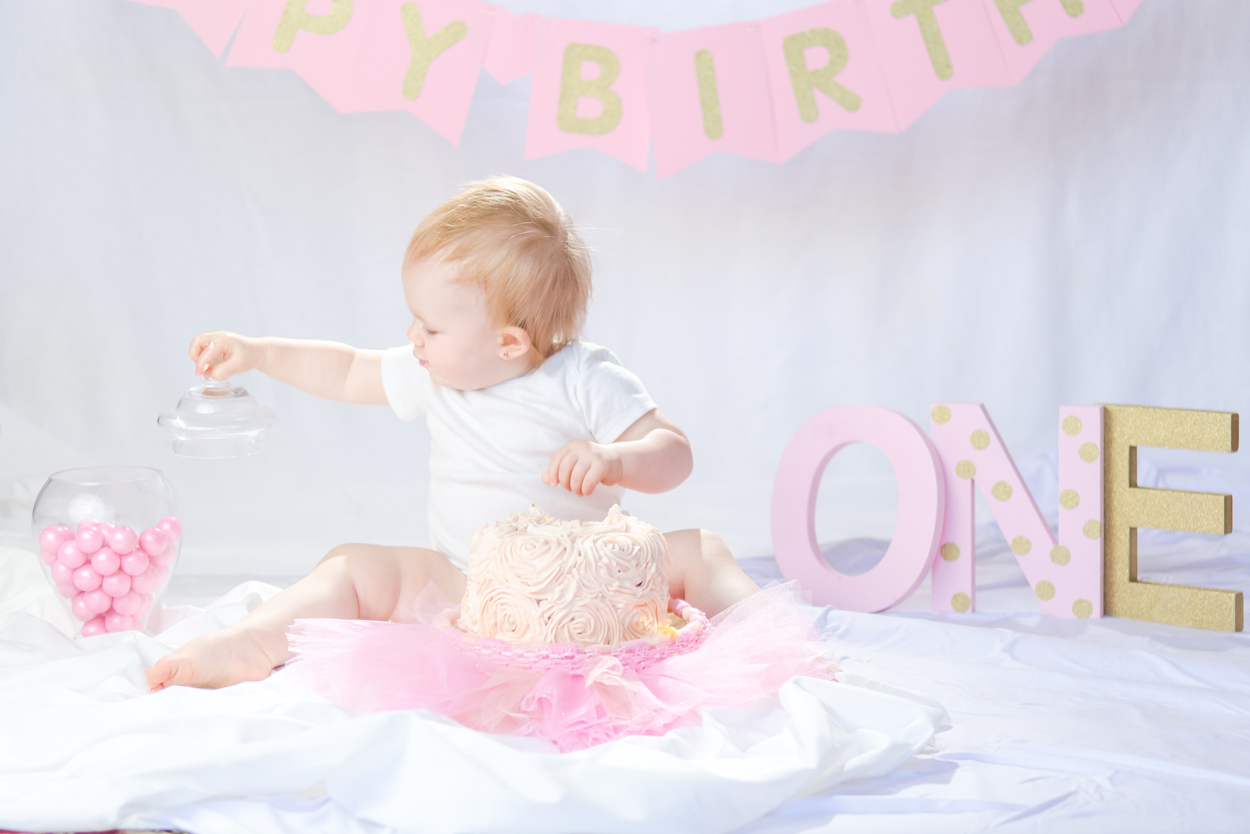 While this one-year-old is humorous, spunky, and smart. A cake smasher, she is not! There was plenty of laughs and curiosity from Alix well enough to have a successful and fun session. However, the lovely pink cake remained largely intact.